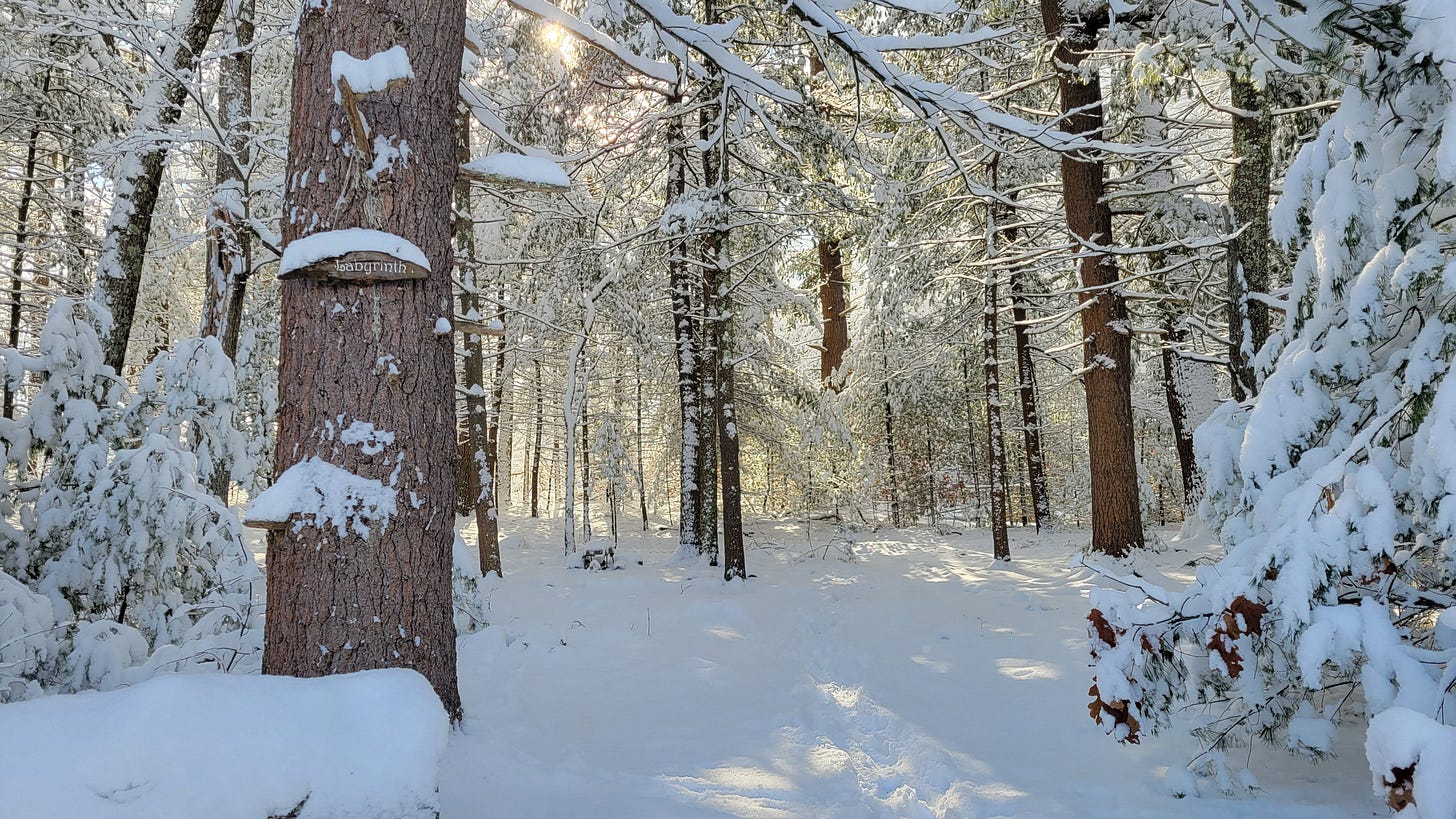 If you’d like to join in community by participating in a virtual/online group labyrinth walk on a Friday afternoon, visit the Veriditas website and scroll down to “Upcoming Handheld Labyrinth Meditations” to register, and you will receive the Zoom link. This organization also has a presence on Substack.